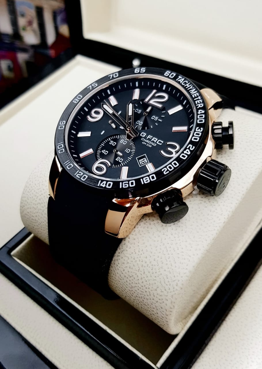 Reloj Original Con Cronógrafos Totalmente Funcionales, Cristal En Mineral Y Pulso En Goma